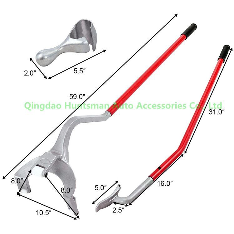 LAKO UGRADNJA I DEMONTACIJA GUMA: Nakon ispumpavanja gume, umetnite alat za demontažu kamionske gume između gume i naplatka; Podignite alat za demontažu gume gore i preko centra da biste demontirali gornje rubove; Vratite alat u prvu poziciju da uhvatite donju perlu i ponovite proces demontaže; Da biste ugradili novu gumu, postavite gumu i podignite donji rub preko naplatka pomoću šipke za hvatanje gume; Pustite da glava alata uhvati gornju perlu i otkotrljajte glavu iz perle; Umetnite kuku kako biste držali jednu stranu gume i počnite zakačiti gumu na naplatak
